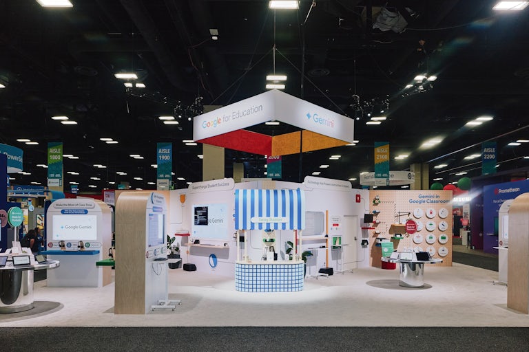With a 360-degree layout, the booth was divided into three distinct areas: a student-focused space that showed how Google tools can supercharge learning, an educators' space where guests could discover new ways to make day-to-day tasks more efficient, and a demo slam space where they could watch Google tools in action.